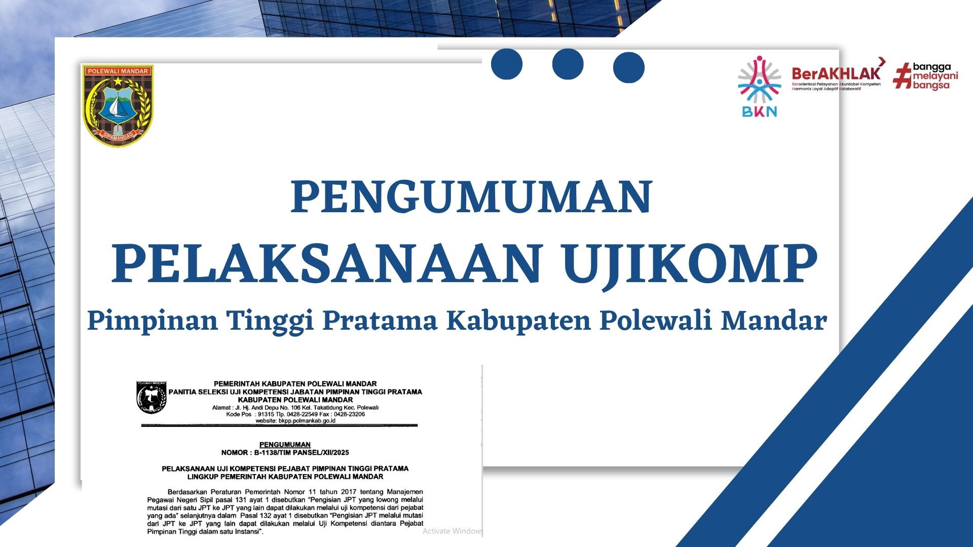 PENGUMUMAN UJI KOMPETENSI PEJABAT PIMPINAN TINGGI PRATAMA LINGKUP KABUPATEN POLEWALI MANDAR...